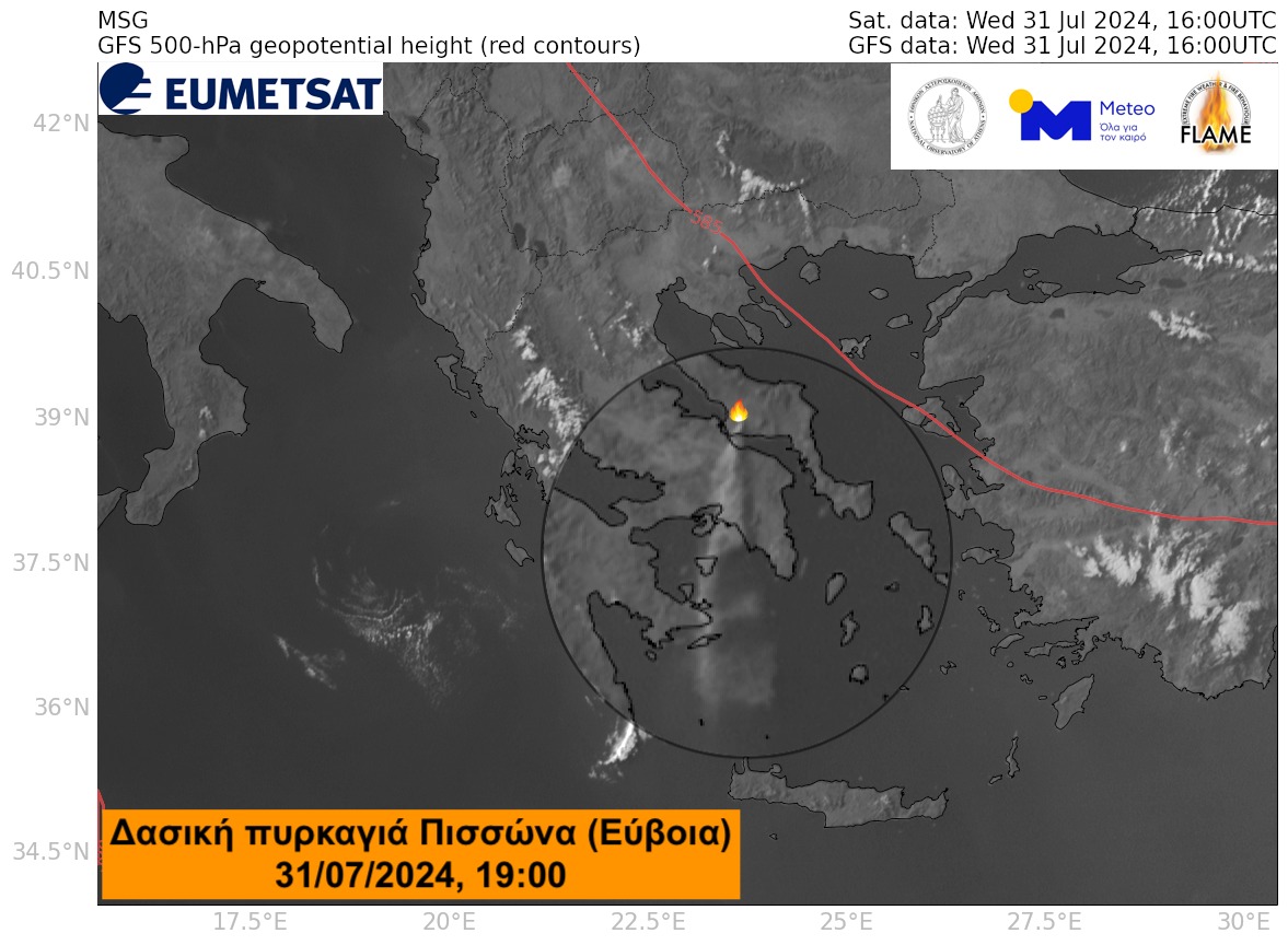 Ακολουθεί και σχετικό βίντεο του Meteo στο οποίο φαίνεται επίσης η μεγάλη διασπορά του καπνού από την έναρξη της πυρκαγιάς έως και αργά το απόγευμα (19:30) της Τετάρτης 31 Ιουλίου 2024.