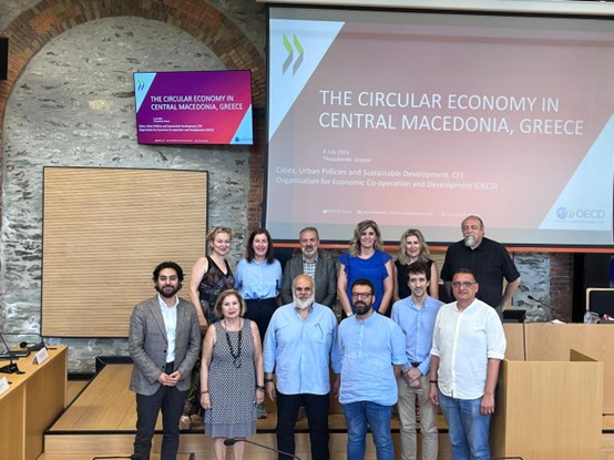 Συνάντηση εργασίας και διαλόγου με τη συμμετοχή σημαντικών φορέων της Κεντρικής Μακεδονίας διοργάνωσαν στη Θεσσαλονίκη η Περιφέρεια Κεντρικής Μακεδονίας (ΠΚΜ) σε συνεργασία με το Περιφερειακό Ταμείο Ανάπτυξης Κεντρικής Μακεδονίας (ΠΤΑ ΚΜ) και τον Οργανισμό Οικονομικής Συνεργασίας και Ανάπτυξης (ΟΟΣΑ). Η συγκεκριμένη δράση πραγματοποιήθηκε στο πλαίσιο του Προγράμματος Κυκλικής Οικονομίας σε Πόλεις και Περιφέρειες (Programme on the Circular Economy in Cities and Regions) του ΟΟΣΑ και της Πρωτοβουλίας Circular Cities and Regions (CCRI), το τριήμερο 3-5 Ιουλίου 2024, στην αίθουσα συνεδριάσεων στο νέο συνεδριακό κέντρο της ΠΚΜ.