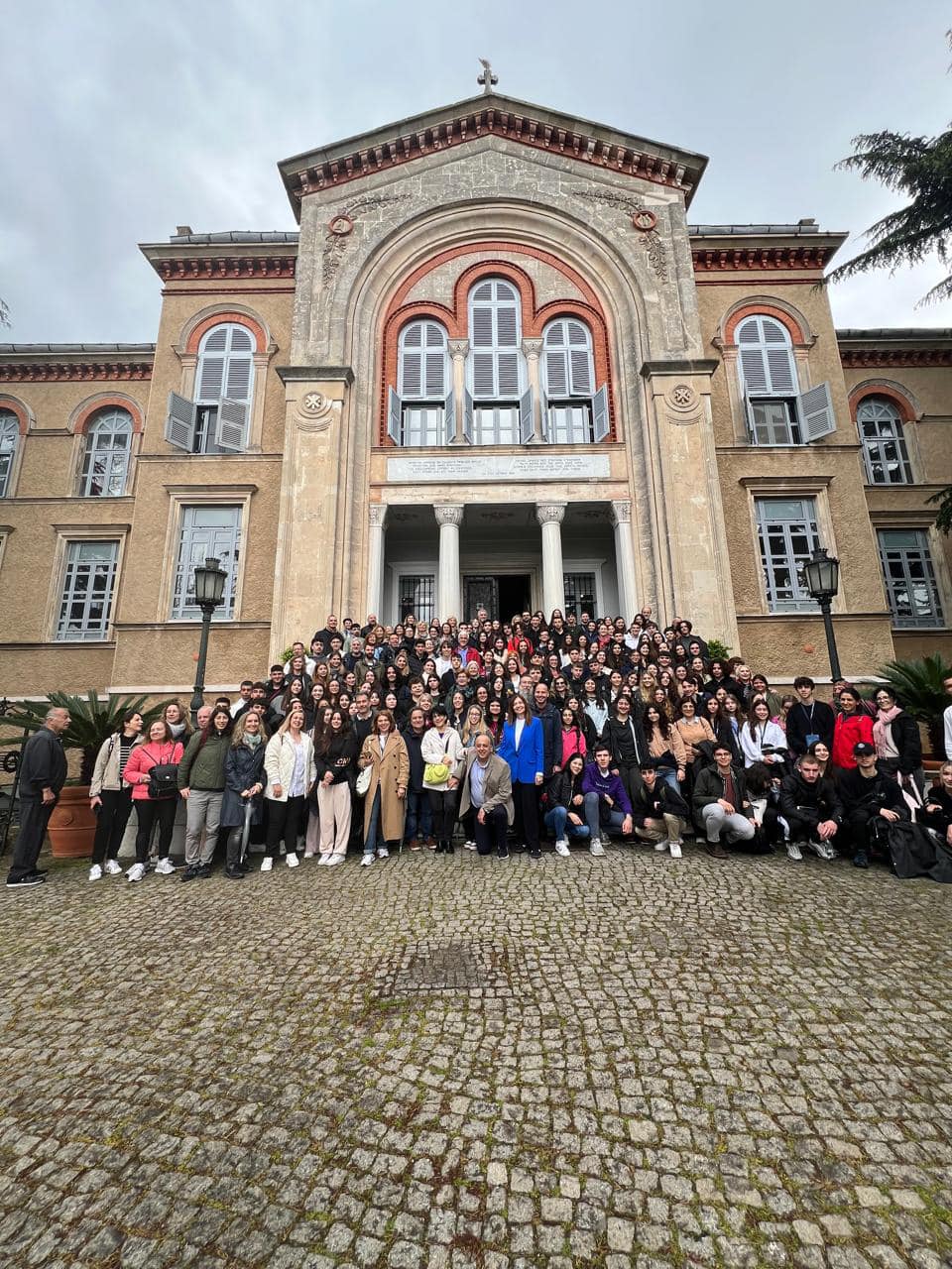 Πρώτος προορισμός η Χάλκη. Μεγάλη η συγκίνησή όλων, καθώς αντίκρισαν για πρώτη φορά τη Θεολογική Σχολή στον «Λόφο της Ελπίδας». Στη Θεολογική Σχολή παρακολούθησαν την ομιλία της Αντιόπης Δημητριάδου, Φιλολόγου, MSc Διοίκησης Πολιτισμικών Μονάδων με θέμα: «Η διάσταση εκπαιδευτικής διπλωματίας που ενέχουν τα Διεθνή Μαθητικά Συνέδρια Λογοτεχνίας στο Ζωγράφειο της Κωνσταντινούπολη»