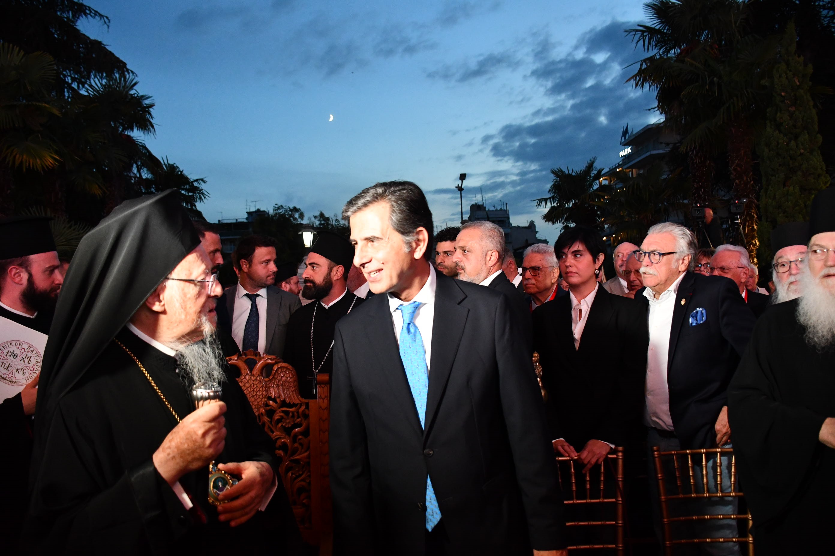 Τον Οικουμενικό Πατριάρχη υποδέχτηκε στον κατάμεστο από ιεράρχες και πιστούς προαύλειο χώρο του Διοικητηρίου ο Υφυπουργός Εσωτερικών, αρμόδιος για θέματα Μακεδονίας και Θράκης, Κωνσταντίνος Γκιουλέκας.